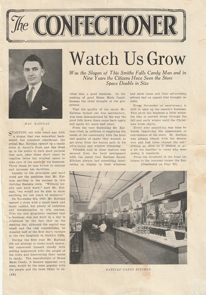 George Katinas Grandfather Candy Store 1930s newspaper publication