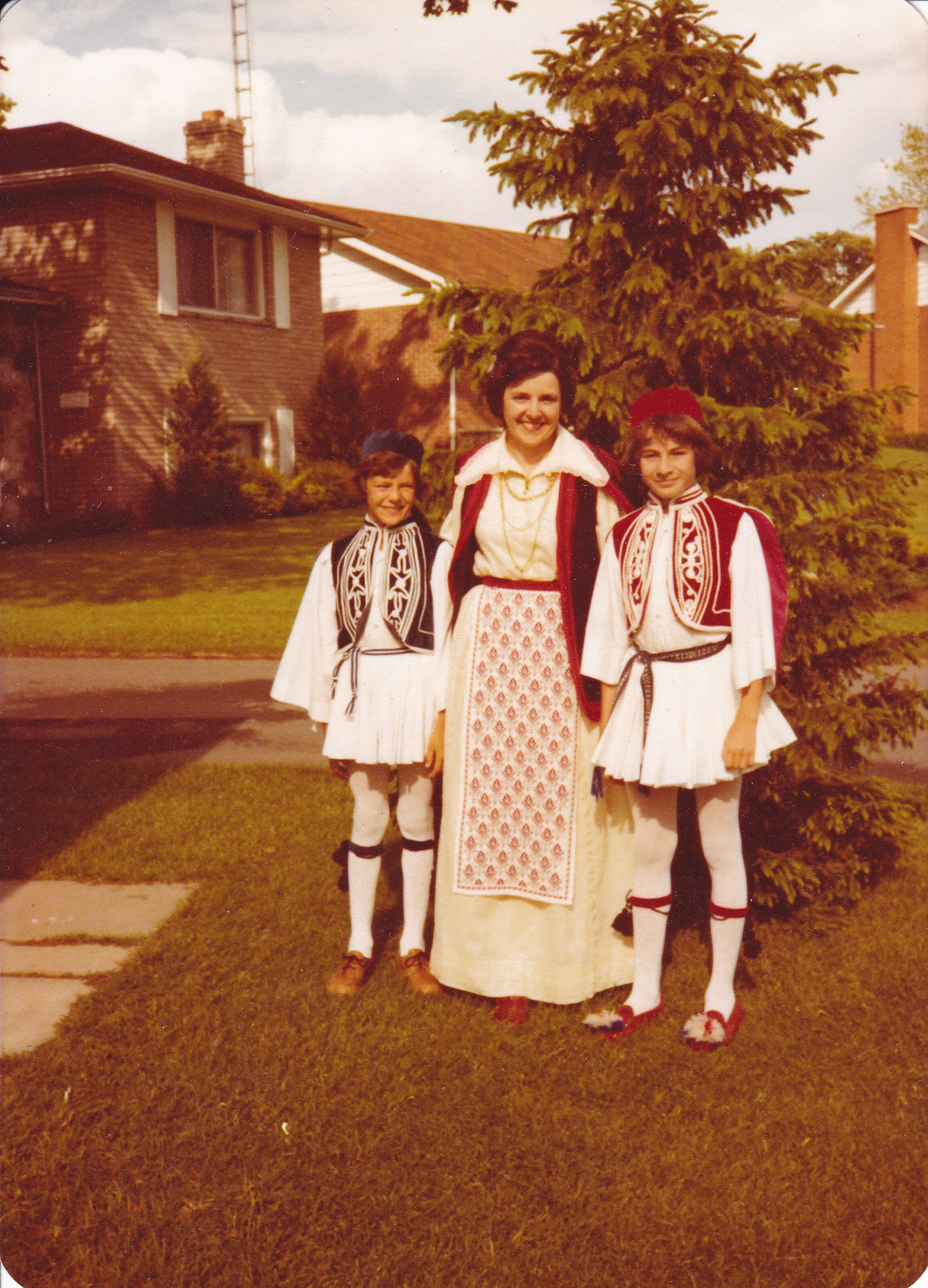 Murva with her two sons before folklore; Muva made all the costumes, except for the apron she is wearing which was made by her sister in law Kostoula Like Loading...